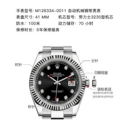 瑞士劳力士ROLEX手表日志型41系列自动机械男表M126334- 0011黑盘带钻三格链