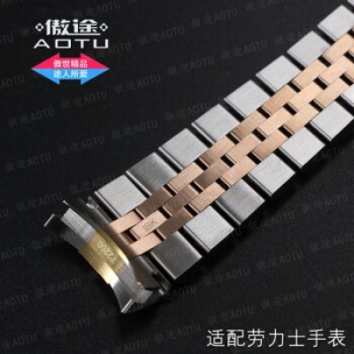 傲途劳力士实心钢带表带 男士精钢手表带 钢表带男不锈钢表链配件 劳力士日志18K金包金表链手表表带 间玫瑰金色 接口宽带20MM